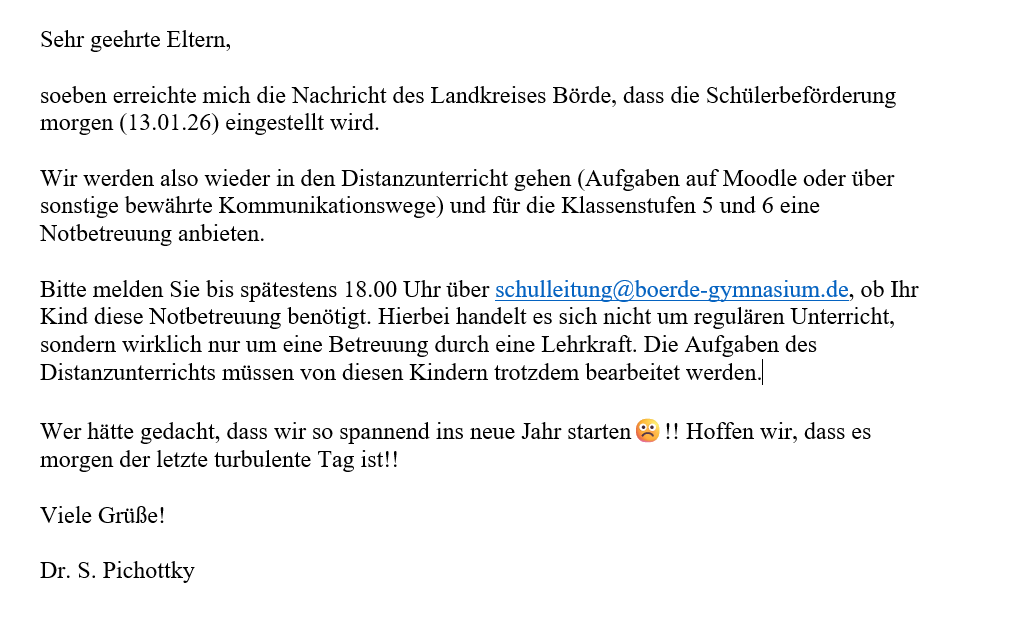 Halbjahreszeugnisse