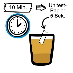 Wartet 10 Minuten, bis das Wasser wieder klarer ist. Taucht den Uniteststreifen für 5 Sekunden in das Wasser und messt den pH-Wert.
