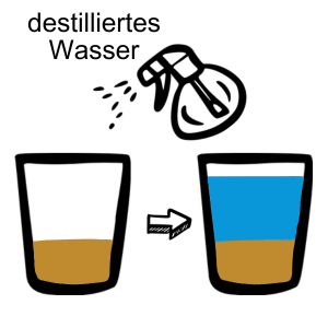 Nehmt füllt eine walnussgroße Menge der Bodenprobe in das Glas und gießt destilliertes Wasser auf (haltet mindestens zwei cm Abstand zum Rand des Glases).