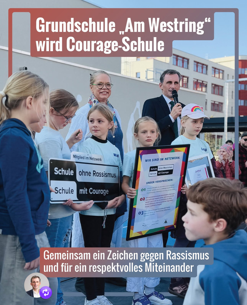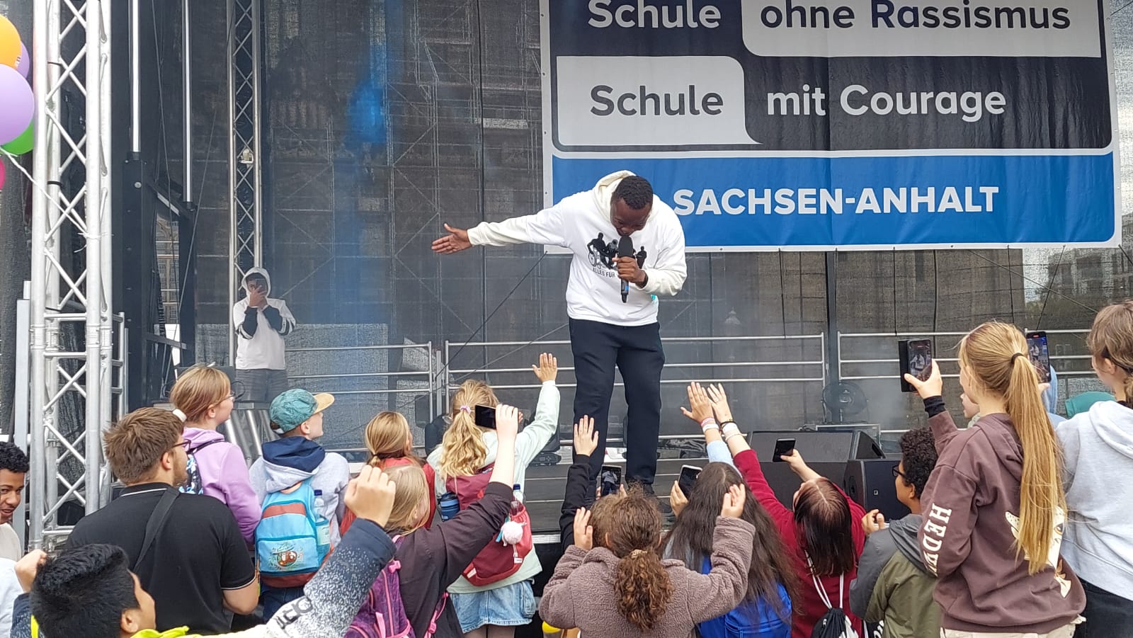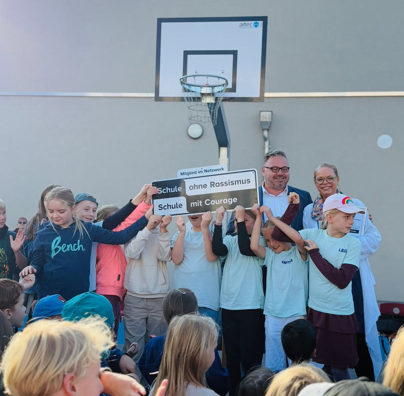 Am 17.09.2025 fand der diesjährige Landestag „Schule ohne Rassismus – Schule mit Courage“ statt. Über 800 engagierte Schüler und Schülerinnen, Pädagogen und Gäste aus über 100 Schulen trafen sich auf dem Domplatz, um für Demokratie, Vielfalt und eine Gesellschafft ohne Diskriminierung und Rassismus Gesicht zu zeigen. Mit dabei vier aufgeweckte Kinder aus unserer Grundschule, die nicht nur in diversen Workshops etwas über Toleranz und friedliches Miteinander lernten, sondern auch begeistert zu den coolen Rapklängen von „Matondo“, einem Berliner Künstler, Streetworker, Moderator, Schauspieler u.v.m. tanzten. An vielen Ständen gab es hübsche Giveaways und tolles Infomaterial, um auch künftig mit den Schülerinnen und Schülern über Respekt und Vielfalt zu sprechen und praktisch zu arbeiten zu können. Eine tolle Veranstaltung! Wir freuen uns auf nächstes Jahr und sind jetzt umso motivierter, den Titel „Schule ohne Rassismus – Schule mit Courage“ künftig mit „Leben“ zu füllen und allen Kindern unserer Schulgemeinschaft gute Vorbilder zu sein.