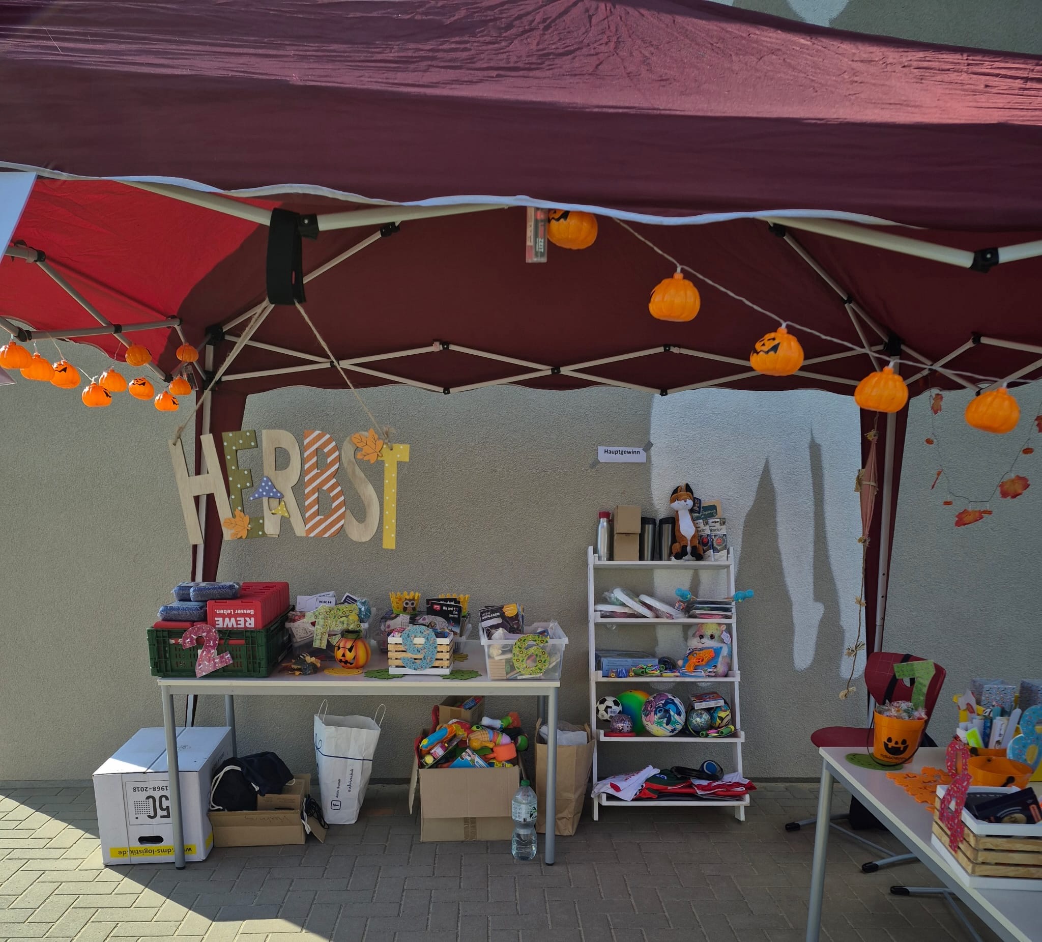 Nach den bewegenden Worten verwandelte sich das Schulgelände in einen fröhlichen Jahrmarkt der Begegnungen: das Karussell drehte sich, Würstchen brutzelten, süße Crepes lockten, das Glücksrad brachte Spannung und an den Ständen gab es Kreatives und Selbstgemachtes zu entdecken. Überall begegneten sich Menschen im Gespräch, im Spiel, im Lachen – genau so, wie ein Herbstfest sein soll.