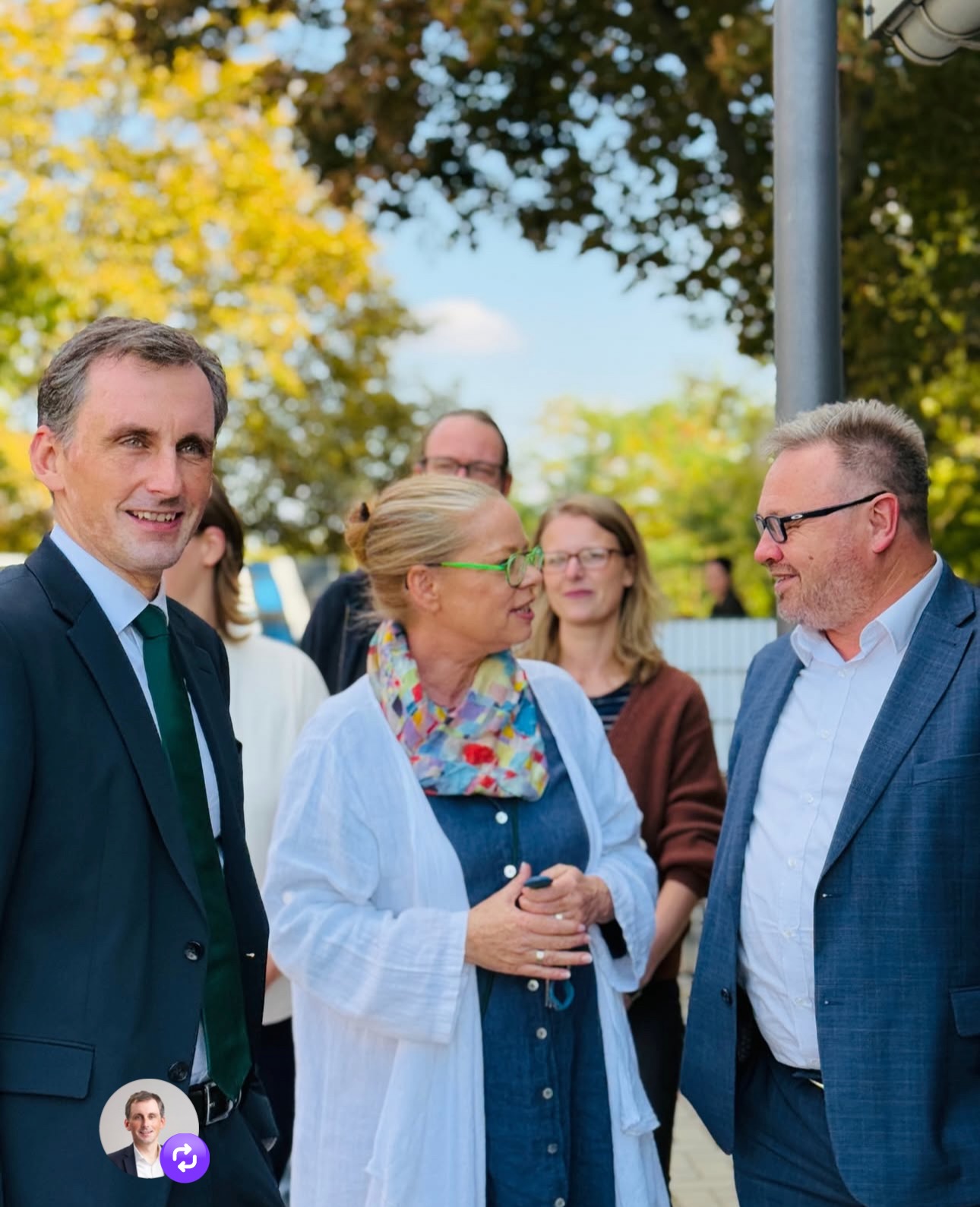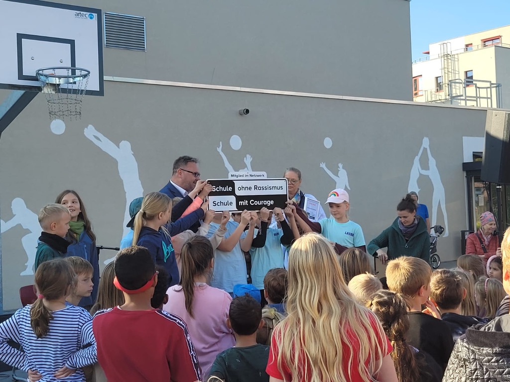 Bei strahlendem Herbstwetter feierten wir mit vielen Gästen, die unser Fest mit Leben und Wärme füllten. Mit großer Dankbarkeit und spürbarem Stolz erhielten wir an diesem Tag den Titel „Schule ohne Rassismus – Schule mit Courage“. Herr Reichel, Direktor der Landeszentrale für politische Bildung, überreichte uns feierlich Urkunde und Schild und hieß uns herzlich im Netzwerk willkommen. Besonders geehrt fühlen wir uns zudem, ab sofort die Patenschaft für zwei Stolpersteine übernehmen zu dürfen – ein Zeichen lebendiger Erinnerungskultur und Verantwortung.