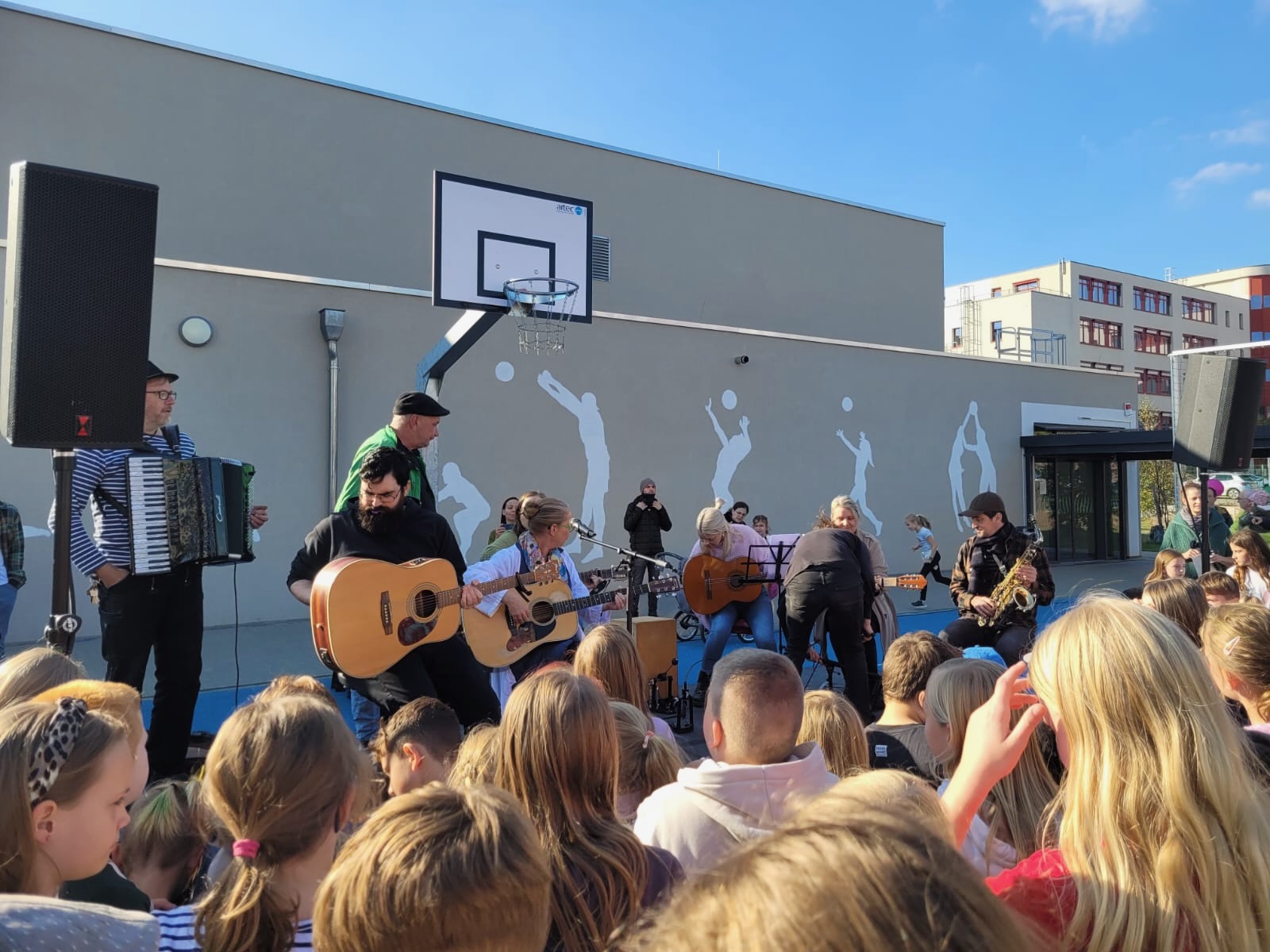 Das Fest begann schwungvoll mit einem bewegenden Konzert unseres Paten Martin Rühmann und seiner Freunde. Im Anschluss fand die feierliche Titelverleihung statt, die von wertschätzenden und ermutigenden Worten des Bildungsministers, Herrn Riedel und unserer Bürgermeisterin, Frau Stiehler-Hinz begleitet wurde. Auch unser Schulkinderrat trat mit viel Selbstbewusstsein auf und erklärte eindrucksvoll, warum wir als Gemeinschaft diesen Weg gewählt haben: eine Schule zu sein, die für Respekt, Vielfalt und Courage steht.