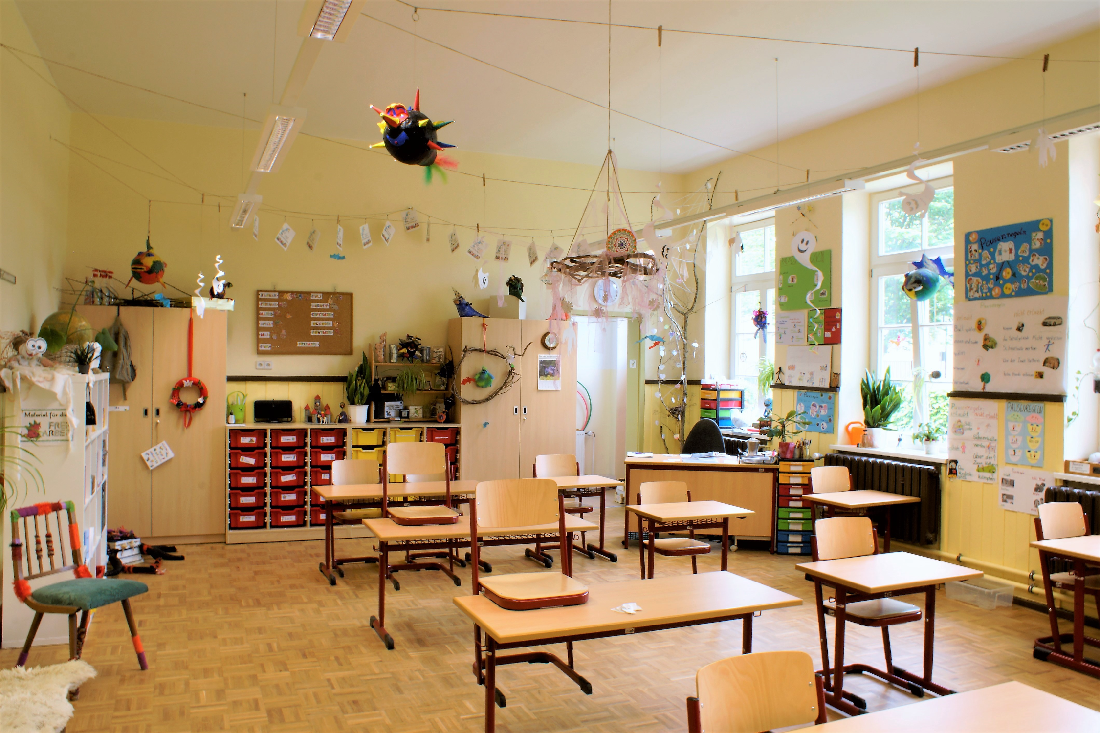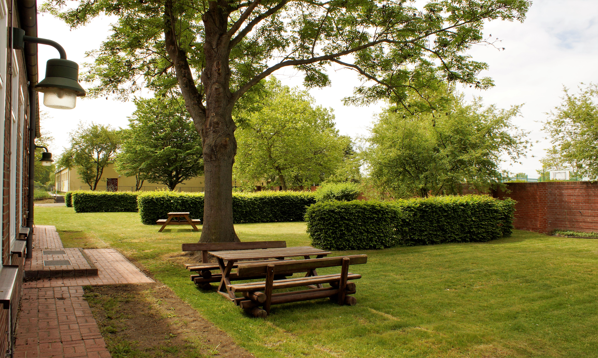 Das, was unsere Schule jedoch wirklich einzigartig macht, sind unsere „grünen Klassenzimmer“, die allesamt auf der Westseite unseres Schulgebäudes liegen. Wir profitieren noch heute von der sozialen Verantwortung, die die Protagonisten des Neuen Bauens stets mitdachten: Sie setzten viel Sonne, Luft und Licht gegen feuchte und dunkle Mietskasernen, überaus beengte Räumlichkeiten und schmutzig-graue Hinterhöfe.