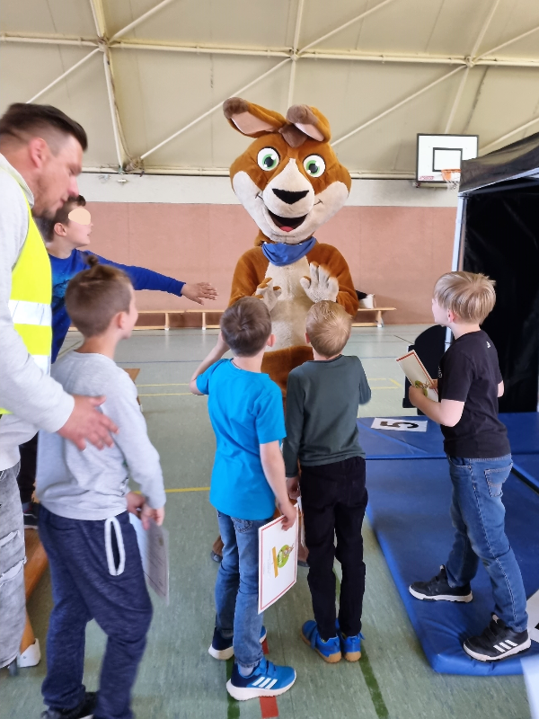 Heute fand bei uns der "Tag der Verkehrserziehung" statt. Was sich recht langweilig anhört geriet zu einem überaus kurzweiligen und dabei lehrreichen Event. Känguru Blicki besuchte unsere Schule und hatte so einiges in petto, was unsere Kids staunen ließ: ein spannendes Hörspiel beispielsweise oder Selbstversuche zum Bremsweg. Da staunten alle nicht schlecht, als sie die Länge eines Bremsweges in Augenschein nahmen! Aber das Highlight war wohl, dass Blicki mit einem super coolen LKW vorfuhr, um allen Kindern die toten Wickel rund um einen LKW zu zeigen. Tja, und dann durften alle auch noch einmal ins Fahrerhäuschen klettern und den Straßenverkehr aus der Perspektive eines LKW-Fahrers in Augenschein nehmen. Dabei haben sie ganz nebenbei gelernt, wo die Hupe im LKW zu finden ist. Das war vielleicht ein Getöse! Zum Abschluss absolvierten die Kids noch ein Wissensquiz zum Gelernten - mit Bravour!