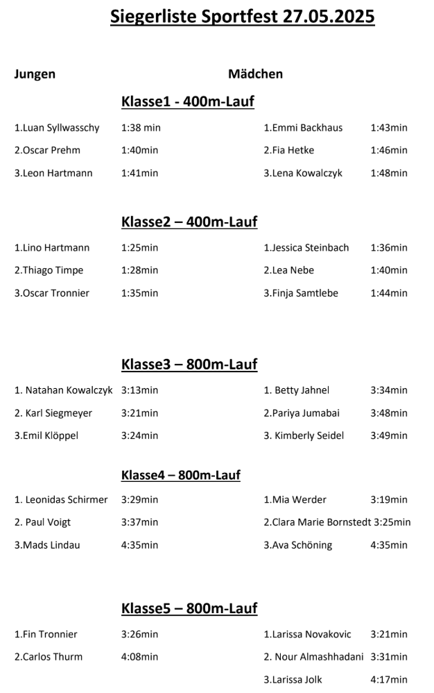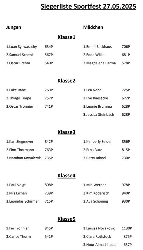 Das waren die Besten beim Sportfest 2024-25: