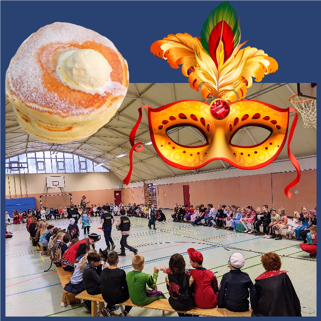 Kurz vor „Toreschluss“ der fünften Jahreszeit übernahmen die Narren und Närrinnen unserer Grundschule und jagten alle Schüler:innen mit einer Inhouse-Rallye durchs ganze Schulhaus. Was für ein turbulentes Treiben: Es wurden Riesen-Zeitungswürmer gebastelt, Tiergeräusche identifiziert, gescrabbelt, Body-Building betrieben, Seil gesprungen, genau hingeschaut, um Detailsfotos zu erkennen, Karten geschnepst – und natürlich viel (Kuchen) gegessen und (Saft) getrunken.