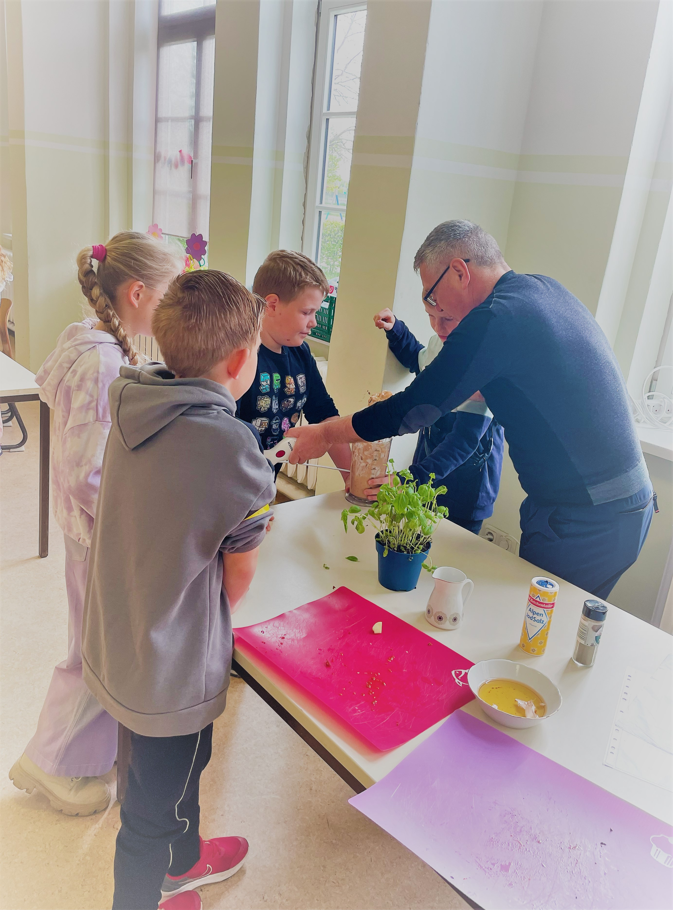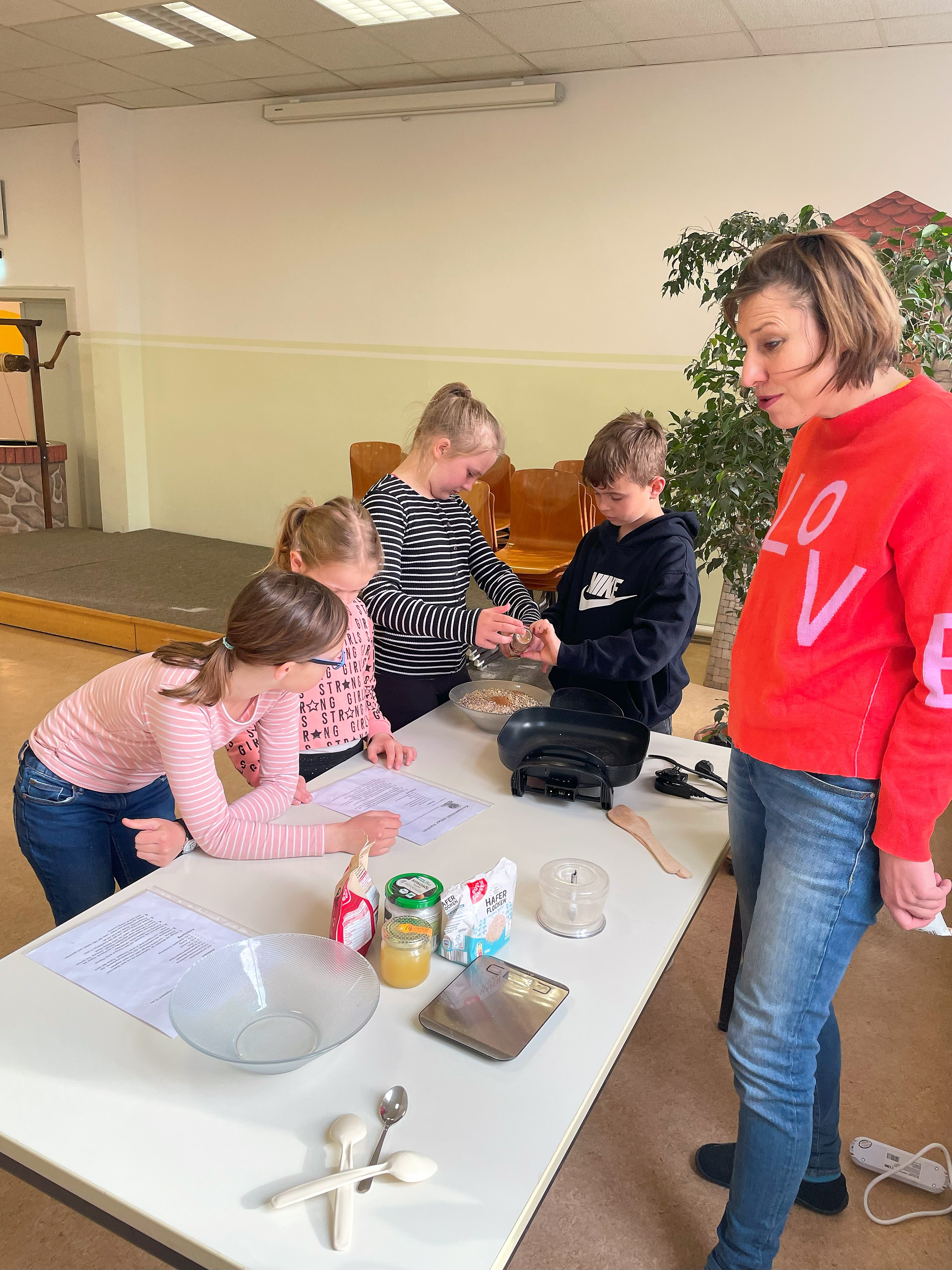 Während der gesamten Projektwoche wurden wir nach Kräften von den engagierten Expertinnen Frau Zur und Frau Heidecke unterstützt: Frau Zur bewies allen, dass gesund auch lecker ist und Frau Heidecke zeigte unseren Kids, dass Ruhe und Entspannung wohltuend sind.