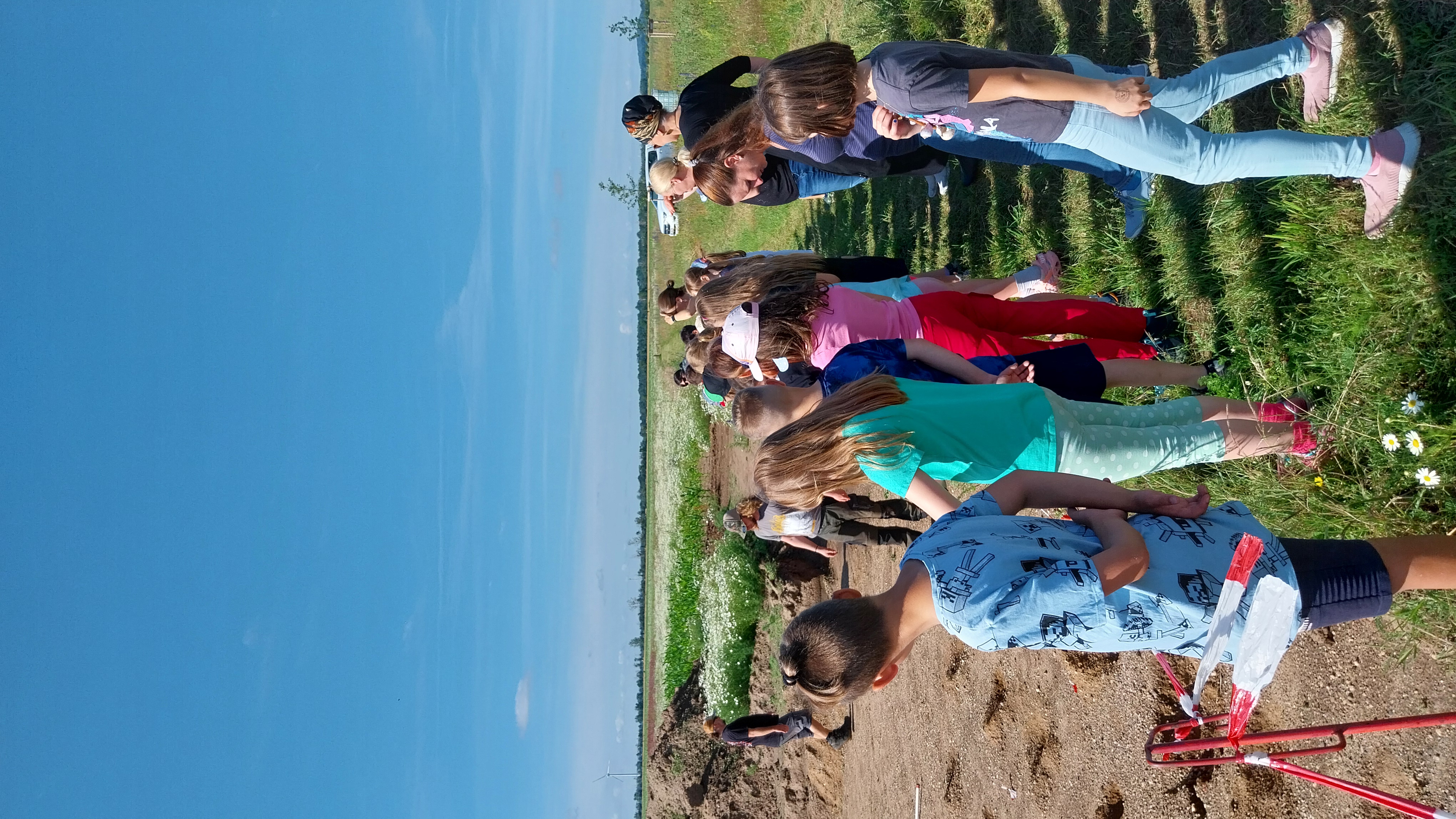 Und das Glück war ihnen hold! Vor Ort fanden gerade archäologische Grabungen statt, die unsere Zweitklässler live miterleben und anschauen durften. In groben Zügen wurde gar erklärt, was dabei so passiert, worauf es ankommt. Echte, dort gefundene steinzeitliche Werkzeuge gab es obendrauf zu bestaunen. Der Kracher war aber ein menschliches Skelett, das im Grabungsfeld freigelegt wurde ...