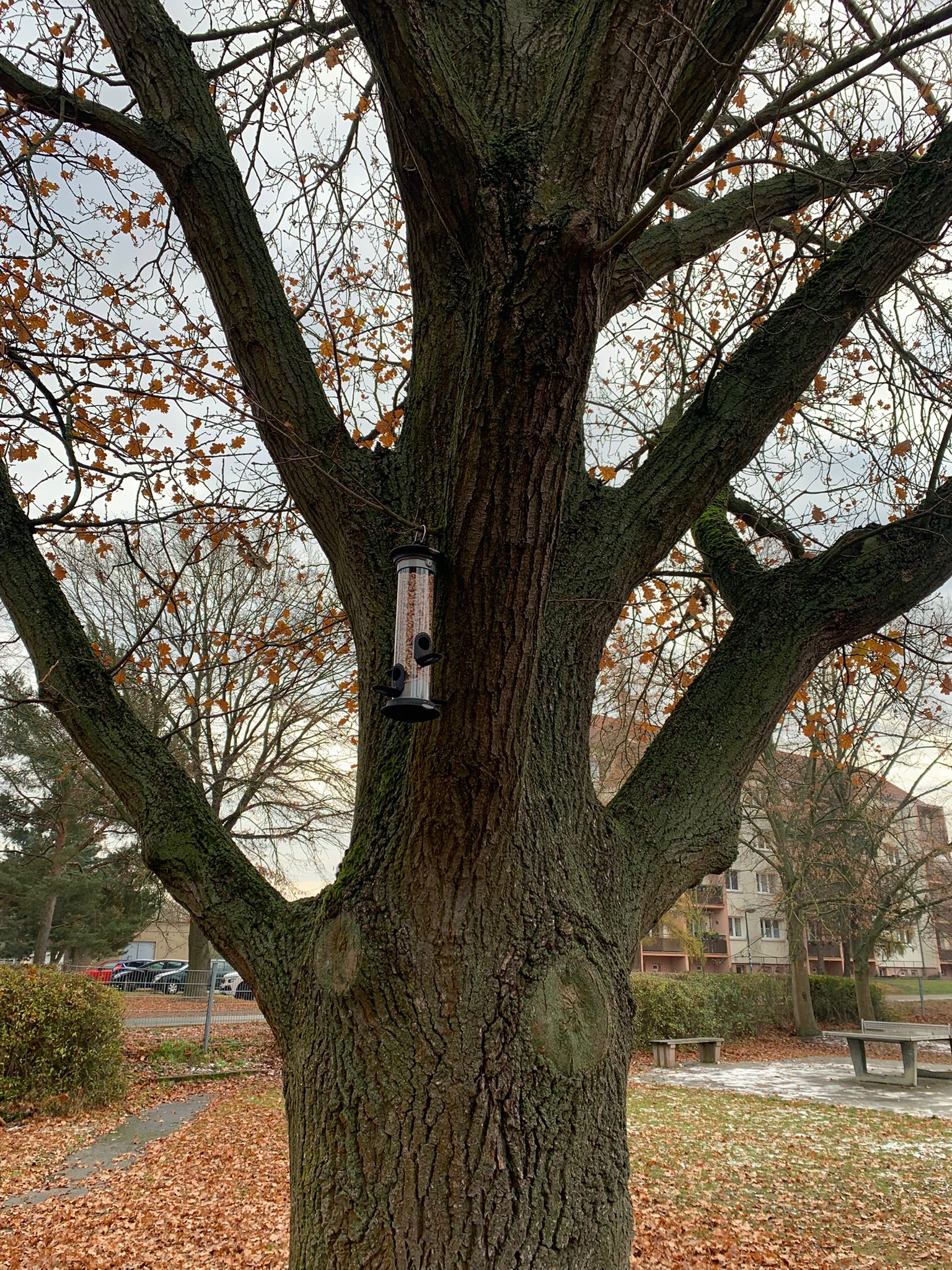 Ein Highlight ist die neue Blühwiese, die Bienen, Hummeln und Schmetterlingen Nahrung bietet. Dazu kommen Igelhäuser, Futterstellen für Igel und Eichhörnchen sowie Vogelfutterhäuser und Futtersäulen – schon jetzt werden die neuen Plätze rege genutzt. Heimische Sträucher wie Schlehen, Holunder und Haselnuss bieten zusätzlichen Schutz, Nahrung und Lebensraum für die Tiere.
