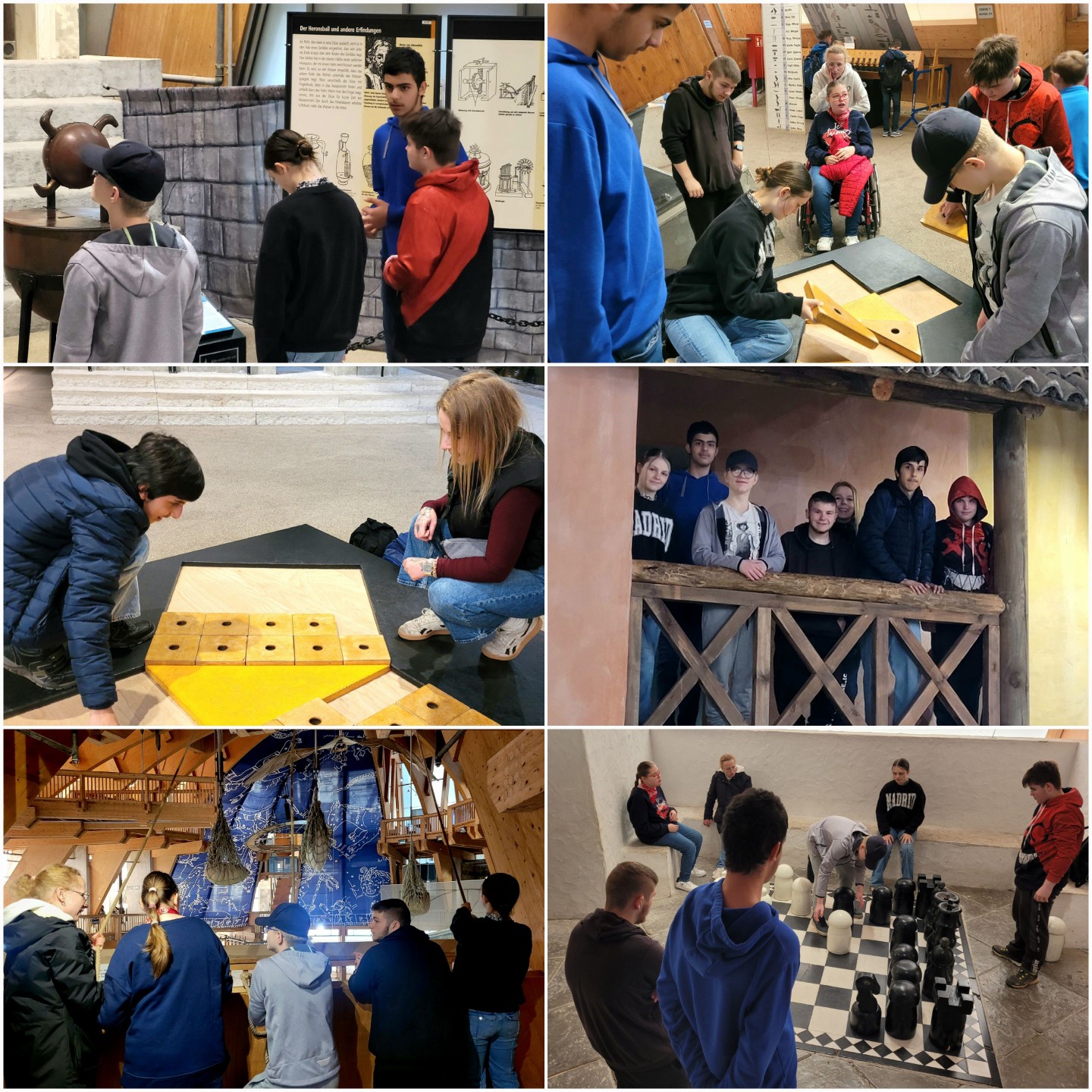 Am 30.09.2025 war die Klasse M9 im Elbauenpark und konnte zahlreiche Dinge im Jahrtausendturm erkunden. Experimente, wissenswerte Informationen sowie Mitmach-Aktionen warteten auf uns. Ein übergroßes Schachspiel und der Nachbau einer Pyramide begeisterte alle SchülerInnen. Weiterhin staunte die Klasse als sie per Seilzug große schwere Mengen hinauf bewegen konnte. Auch ein Flächenvergleich, um den Satz des Pythagoras anschaulich zu machen, versetzte die M9 ins Grübeln. Da die Zeit viel zu schnell verflog, war es sicherlich nicht unser letzter Besuch.