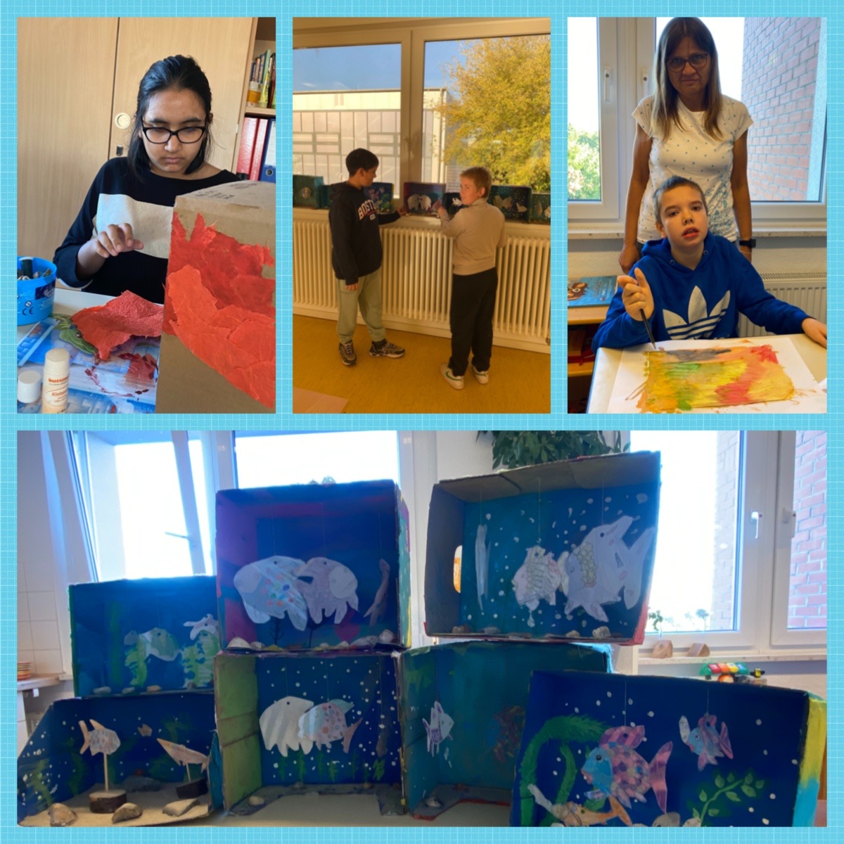 Am 29.09.2025 haben die SchülerInnen der Klasse 7a ihre schönen Aquarien im Mehrzweckraum ausgestellt. Alle waren sehr stolz auf ihre schönen Arbeitsergebnisse.