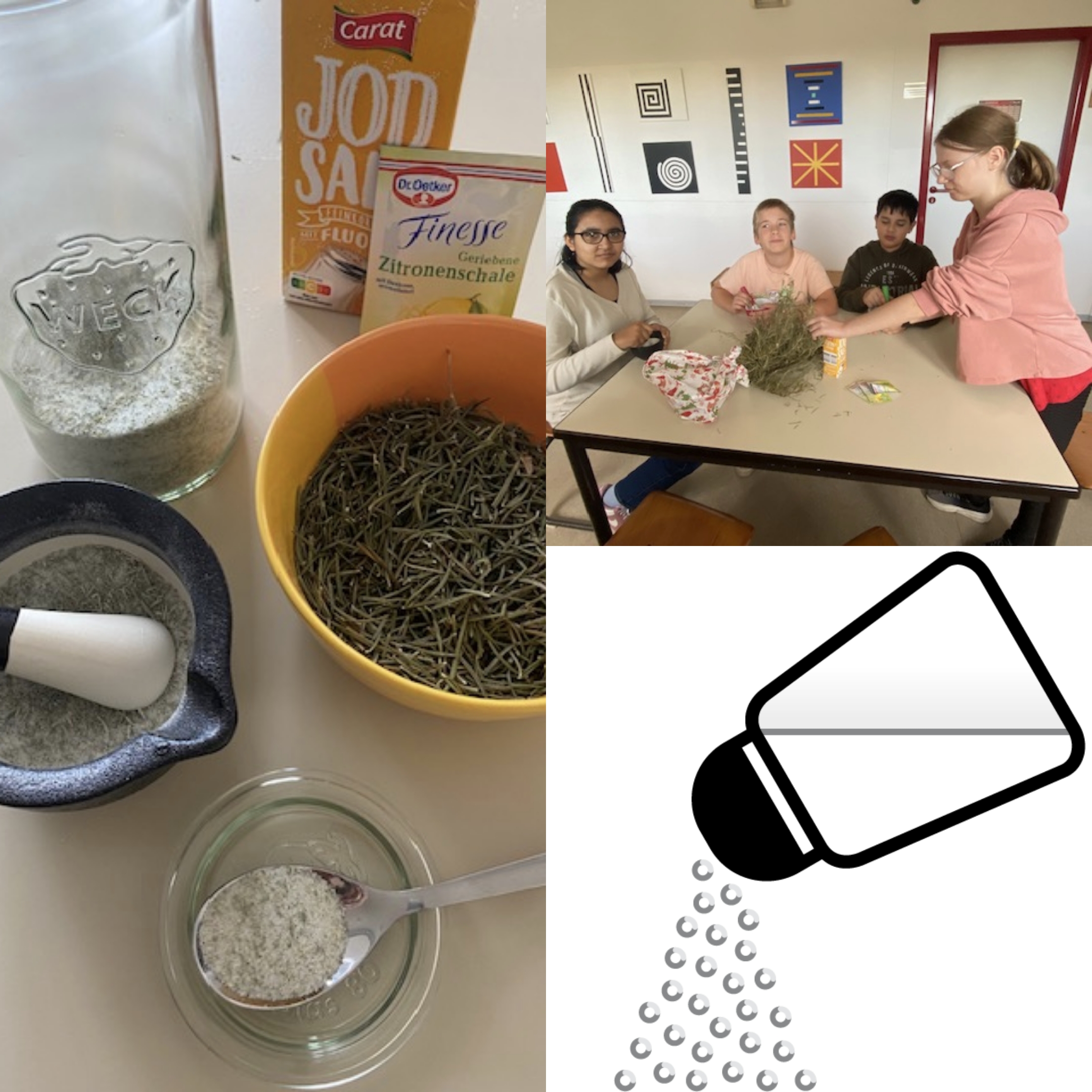 Am 25.09.2025 arbeiteten die SchülerInnen der Klasse M7a fleißig mit dem Mörser. Sie zerkleinerten Rosmarin, um ein leckeres Gewürzsalz herzustellen.
